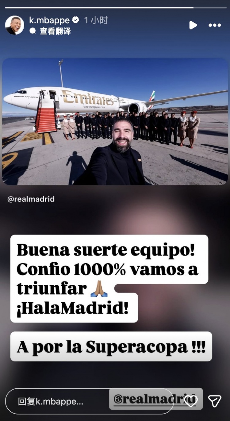 开云体育直播-姆巴佩祝福球队:我1000%相信我们会取胜的,为了西超杯冠军! 1月7日讯 本周二,皇马前锋姆巴佩在个人INS上发布快拍,祝福球队赢得西班牙超级杯。姆巴佩写道:球队好运!我1000%相信我们会取胜的,... 英超 2026.01.15 0 3